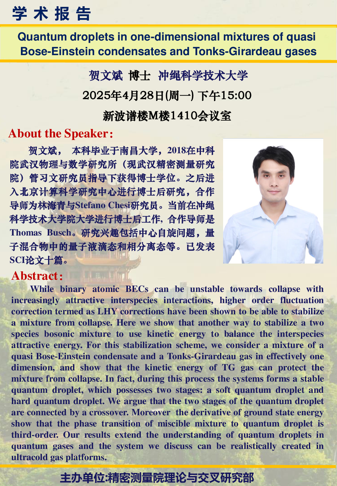 2025年4月28日精密测量院理论与交叉部学术交流报告