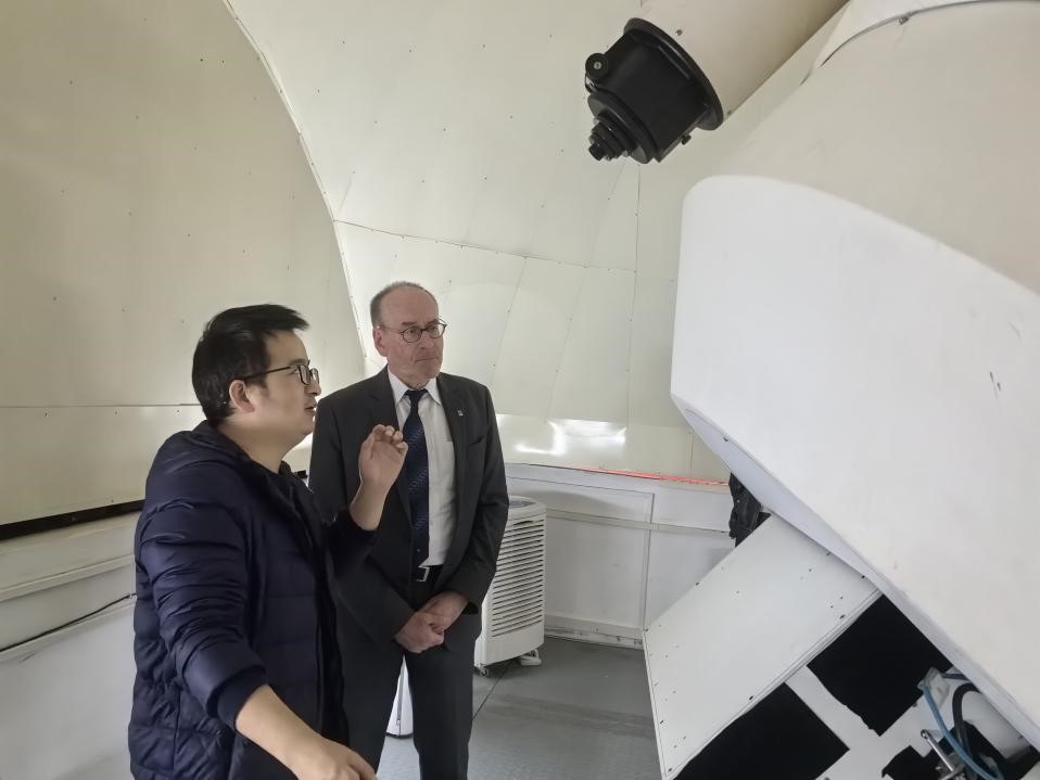 会后,Harald Schuh教授在青年正高级工程师张杰的陪同讲解下,参观了大地测量野外观测研究站。