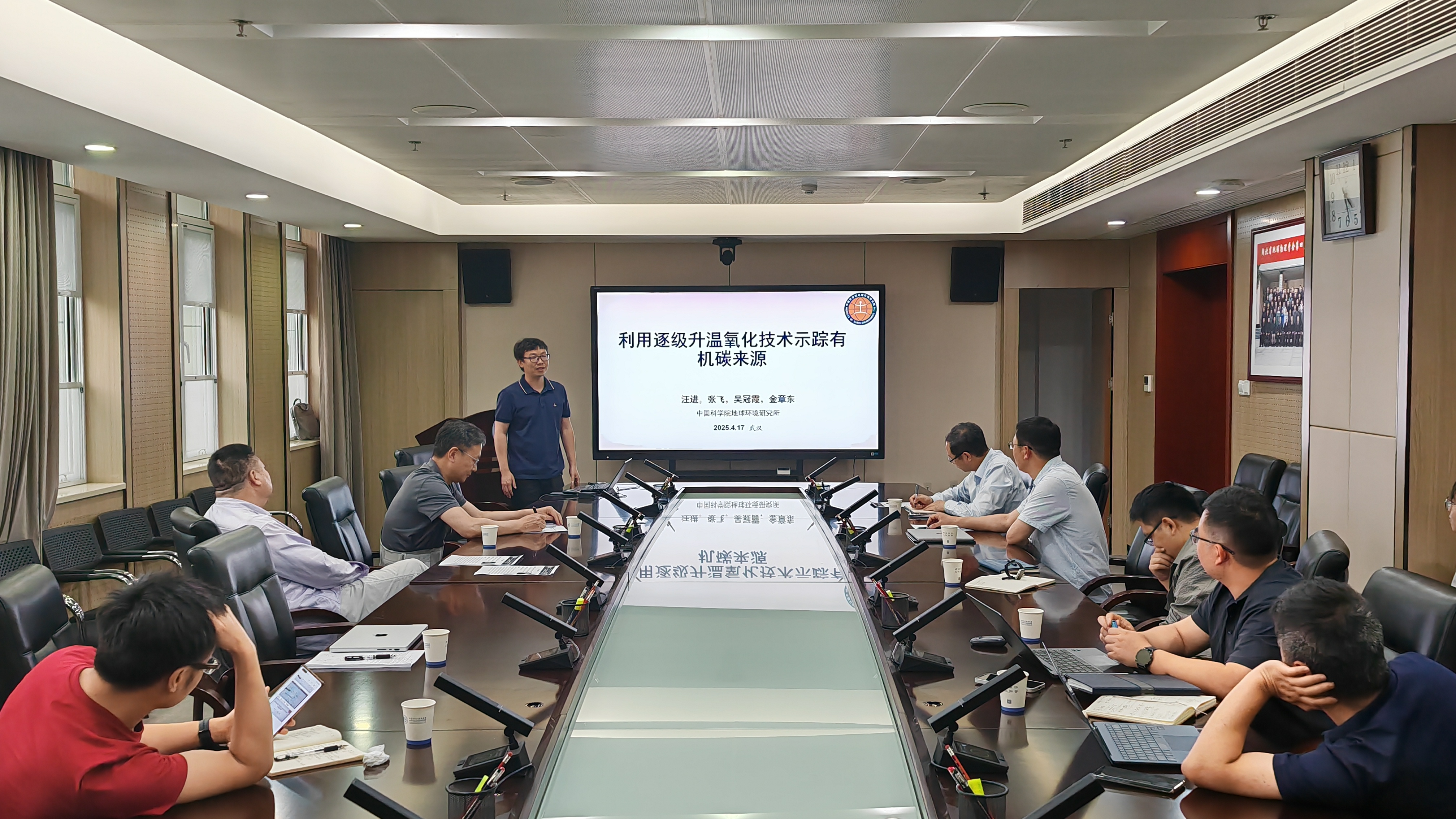 汪进讲解了逐级升温氧化技术的原理,利用热裂解氧化分析的热谱图可有效地示踪有机碳的来源,在误差范围内能较为有效地定量碳源端元的贡献。用该技术发现青海湖布哈河流域POC超80%来源于土壤的侵蚀,土壤贡献POC的14C年龄为2700年,侵蚀深度达60±15cm。